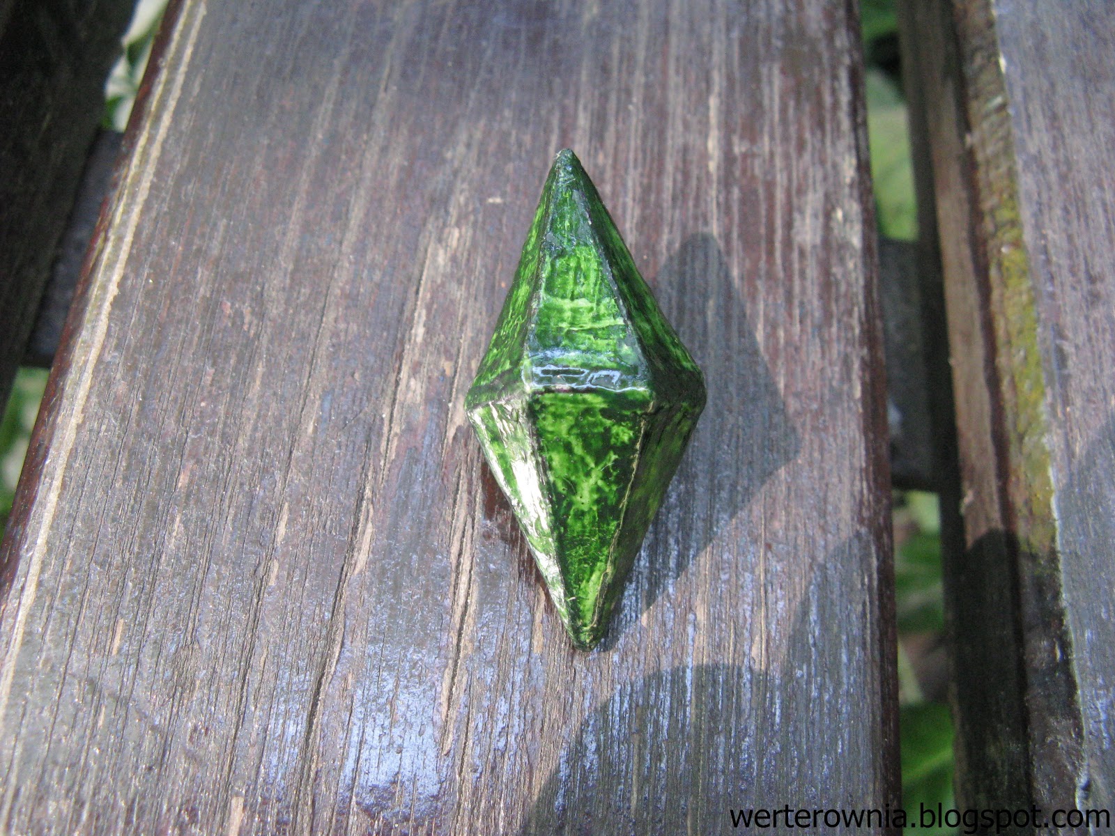 Paznokcie zainspirowane zielonym kryształkiem z gry Sims